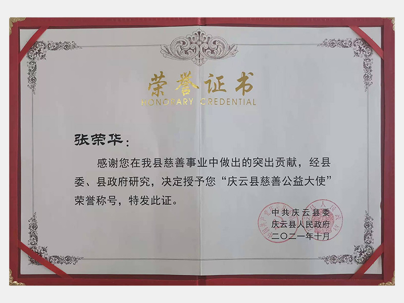 感謝您在我縣慈善事業(yè)中做出的突出貢獻(xiàn),經(jīng)縣委、縣政府研究,決定授予您“慶云縣慈善公益大使”榮譽(yù)稱號(hào)