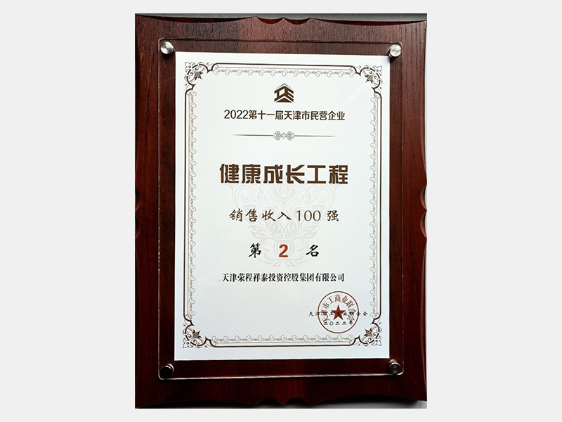 2022第十一屆天津市民營企業健康成長工程銷售收入100強第2名