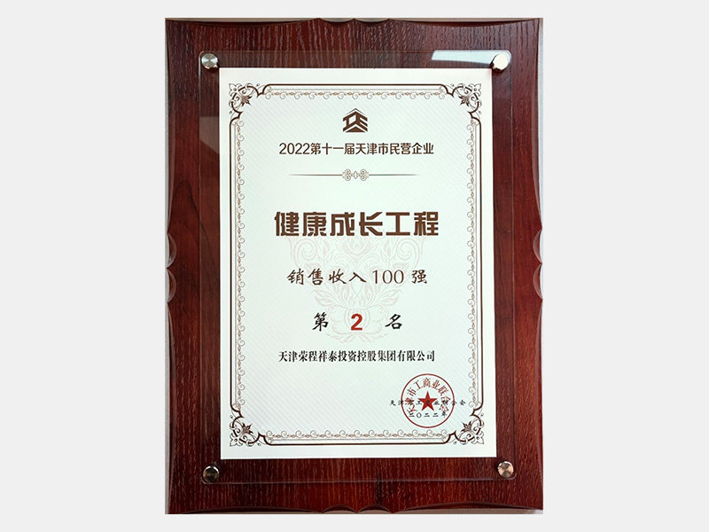 2022第十一屆天津市民營企業健康成長工程銷售收入100強第2名