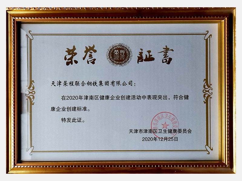 在2020年津南區健康企業創建活動中表現突出,符合健康企業創建標準。特發此證