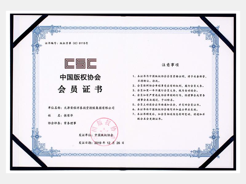 中國版權(quán)協(xié)會會員證書