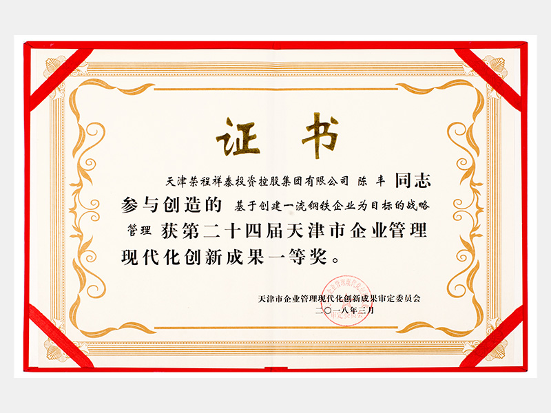 陳豐同志參與創(chuàng)造的基于創(chuàng)建一流鋼鐵企業(yè)為目標(biāo)的戰(zhàn)略管理獲第二十四屆天津市企業(yè)管理現(xiàn)代化創(chuàng)新成果一等獎(jiǎng)
