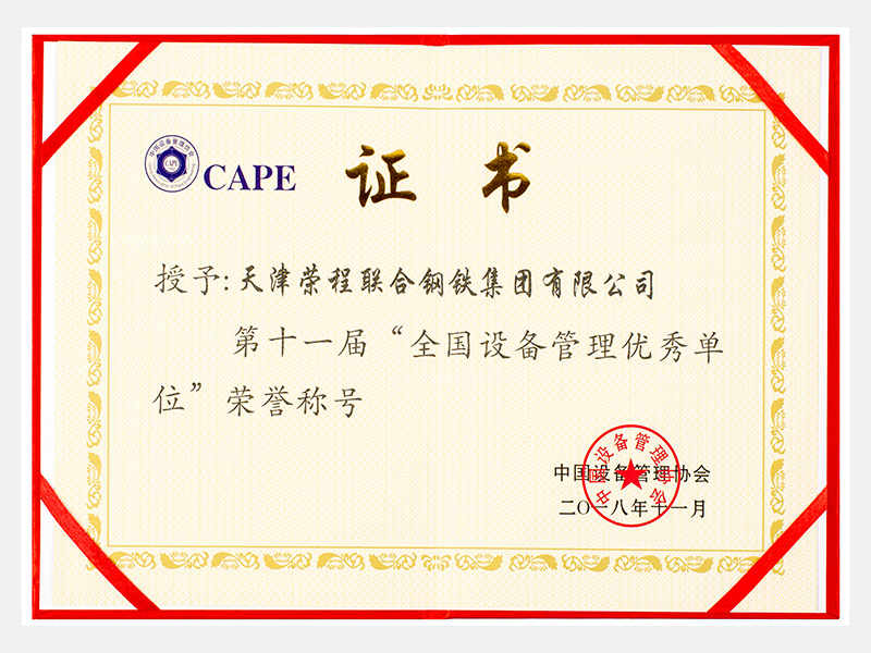 第十一屆“全國設備管理優秀單位”榮譽稱號